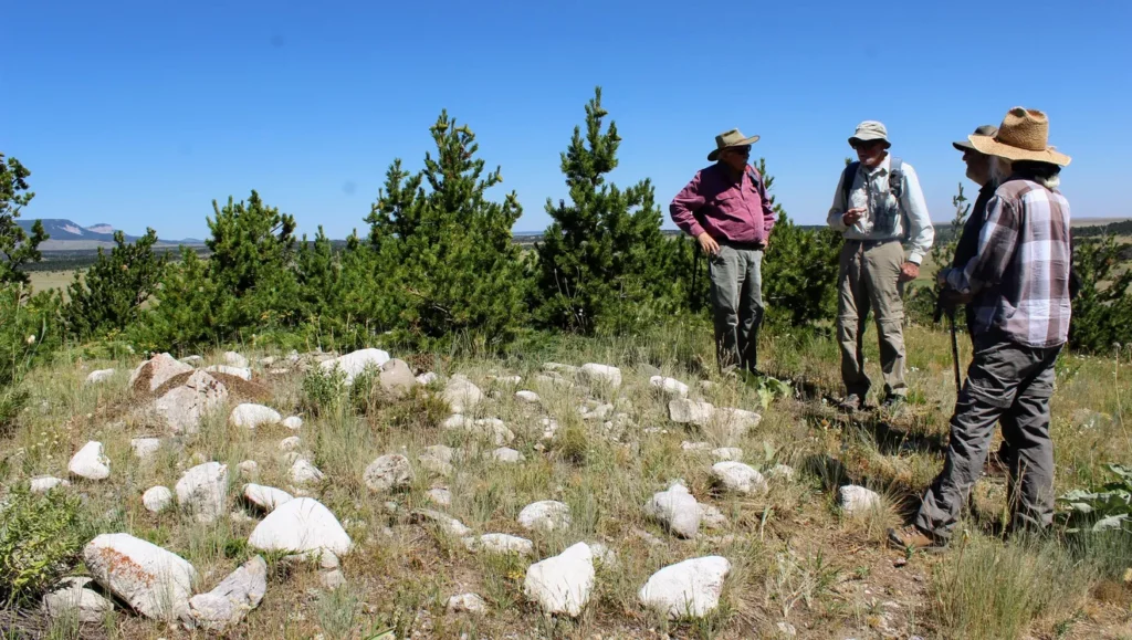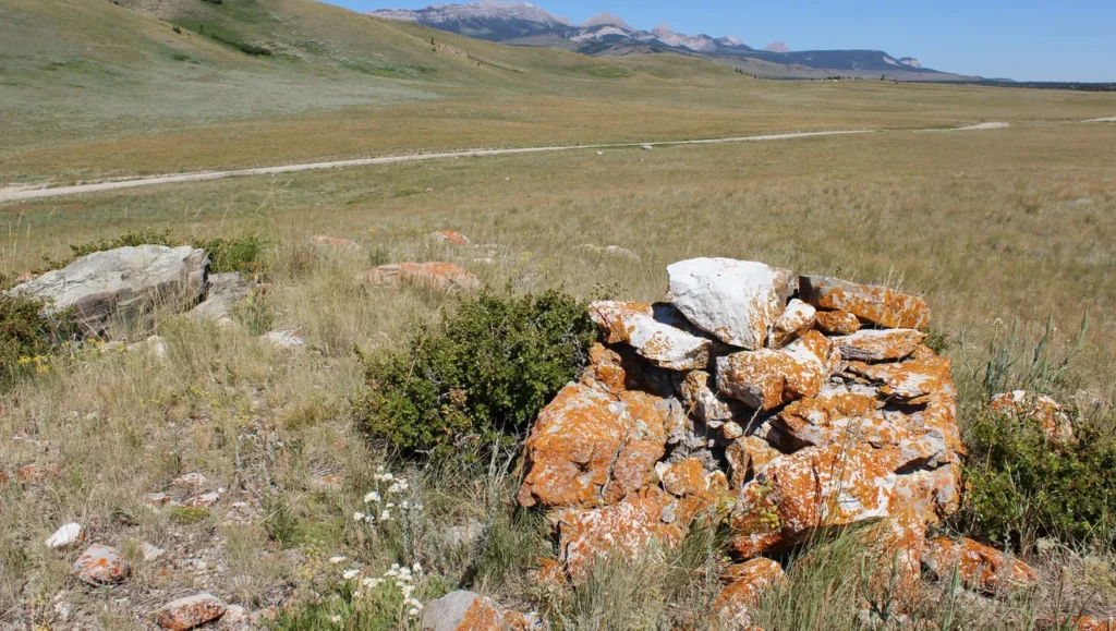 However, on Montana’s Rocky Mountain Front, much of the Old North Trail still exists in an undisturbed state for long stretches. Here along the Front, you can still walk along the same path the Blackfeet, Metís and other indigenous peoples used. You can see the travois ruts etched into the earth over centuries of usage as you follow the rock cairns placed by Native Americans to mark the way. Along the tours of the trail, you will pass by tepee rings, buffalo jumps, eagle traps, as well as a Metís cemetery and cabin, all right at the very foot of the rugged Sawtooth Range on the Rocky Mountain Front. As most of the land along these tours are not public lands, the tours are a unique and exclusive opportunity to experience the well-preserved indigenous historical sites.